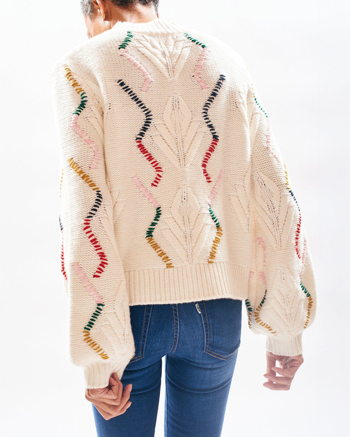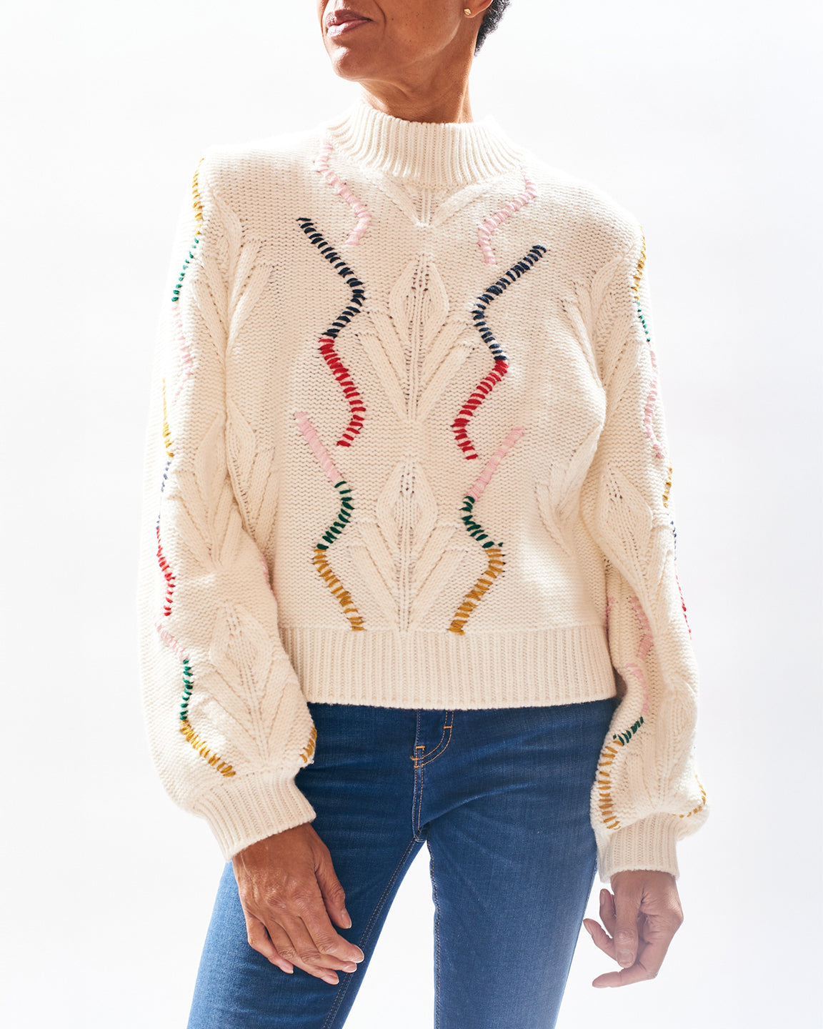 Jumper 1234 Overstitch Cable Turtle in White Alyssum