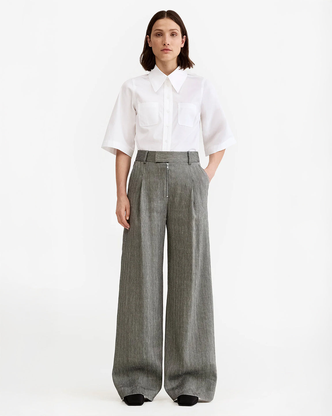 Smythe Exposed Zip Pleated Pant in Granite
