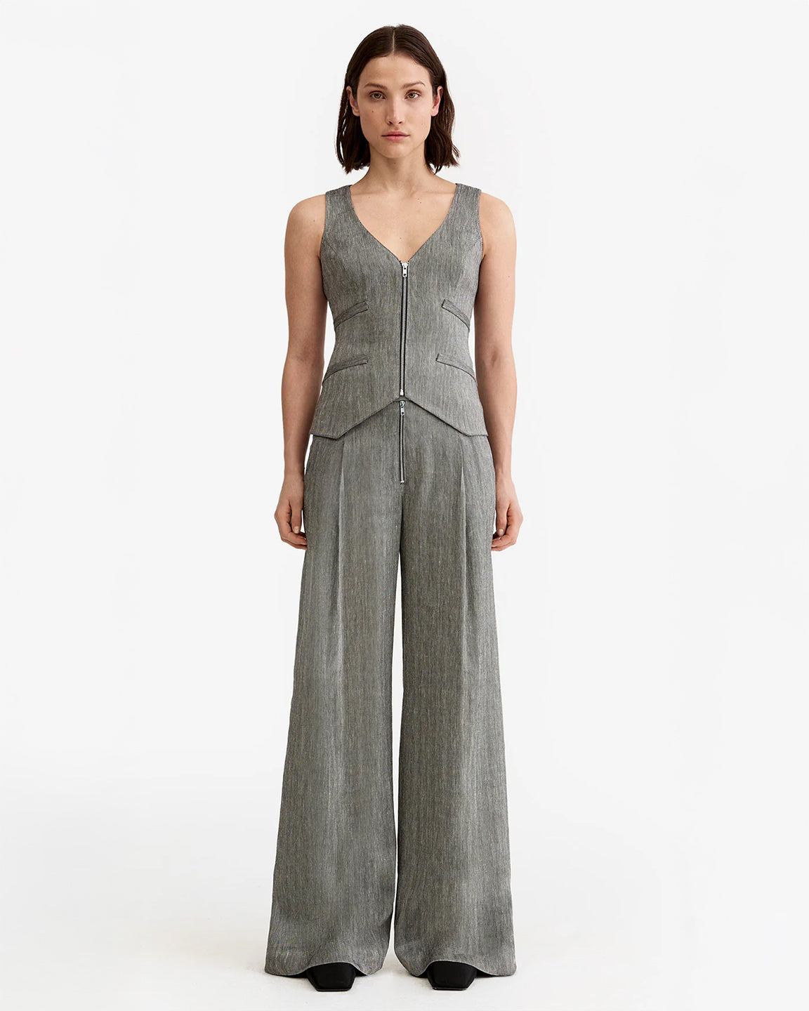Smythe Exposed Zip Waistcoat in Granite