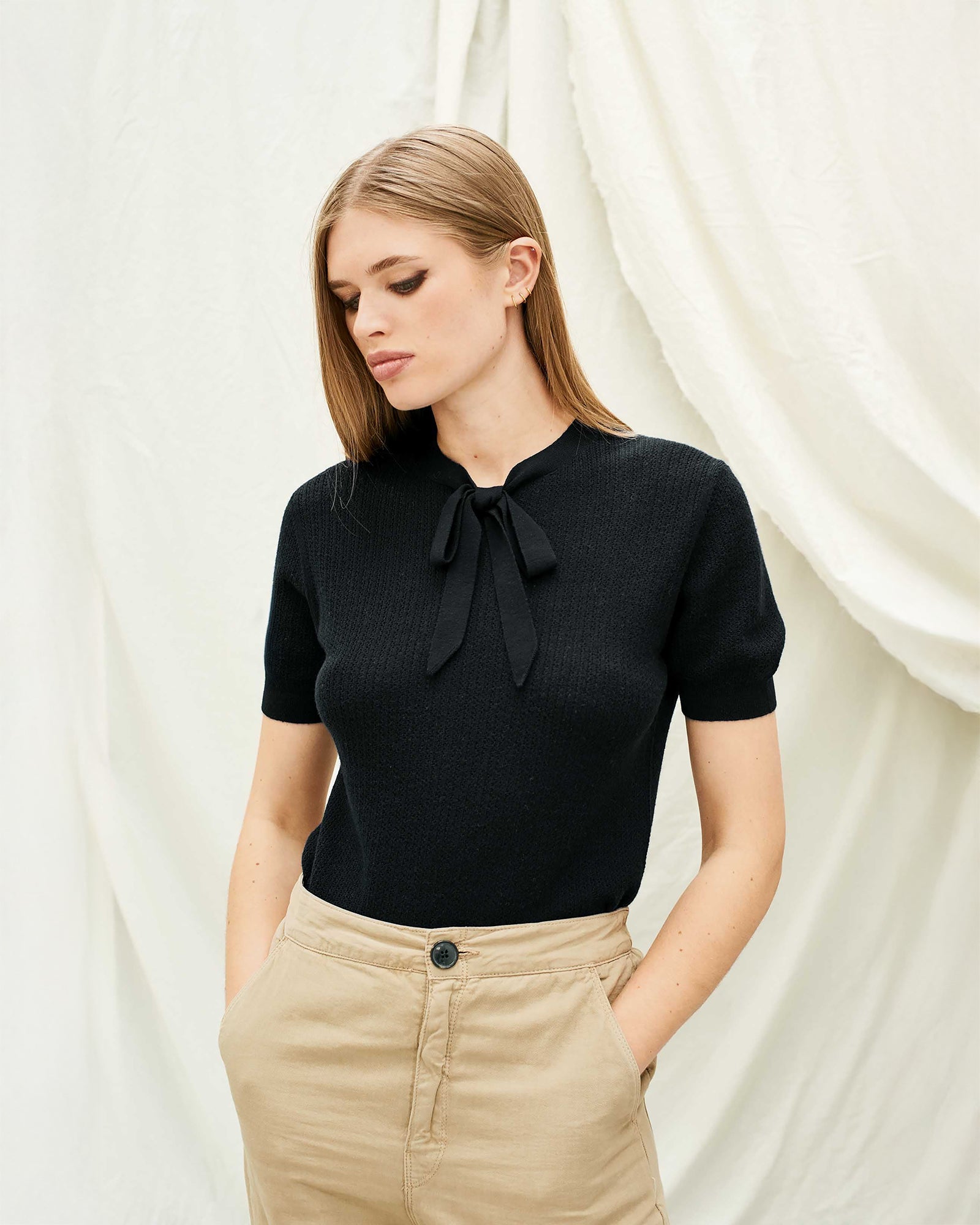 Jumper 1234 Ribbed Pointelle Tee In Black
